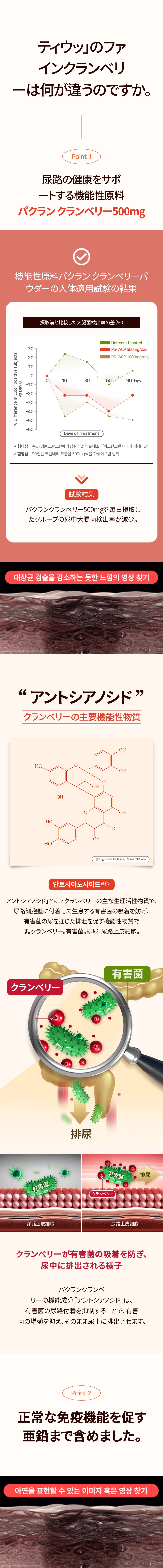 膀胱&尿路管理・免疫管理 尿路の健康に役立つ機能性成分、パクランクランベリー500mgです。正常な免疫機能に貢献する亜鉛も含まれており、トータルケアを提供します。